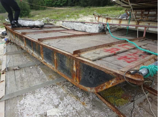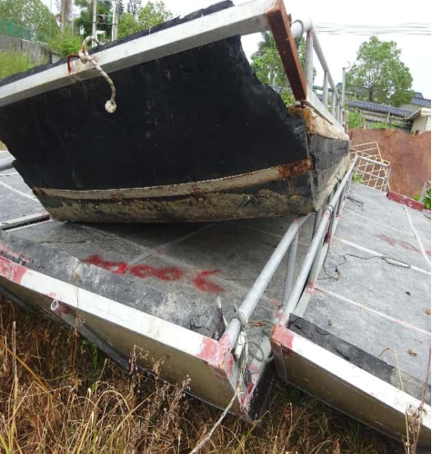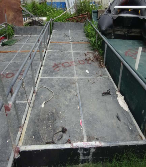 2.编号“扣002”船艇,船体材质:泡沫,总长:4.62米,型宽:1.5米;