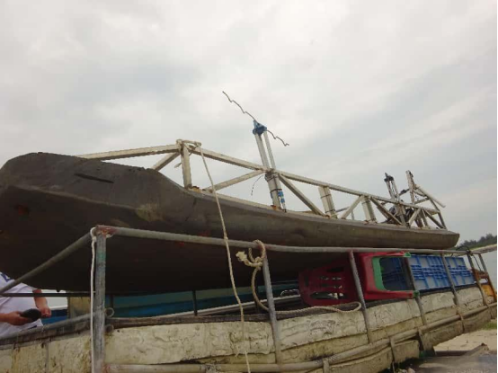 3.编号“扣003”船艇,船体材质:泡沫,总长:4.64米,型宽:1.5米;