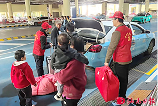 温暖在保障民生与出行的一线同步传递。高铁站内,“善美交通侠”的身影从黎明忙碌至深夜,不仅守护着旅客的平安顺畅,更在紧急时刻开辟绿色通道。1月3日下午,一名小旅客突发疾病,志愿者与铁路部门联动,仅用7分钟便将其送医,跑出了救援“加速度”。
