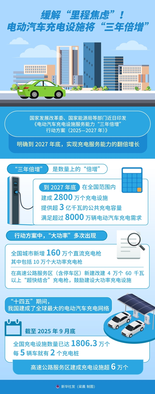 图表:缓解“里程焦虑”!电动汽车充电设施将“三年倍增”