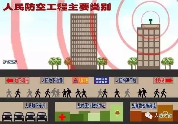 人防工程,是战时掩蔽和保护民众的主要手段,它包括人员掩蔽工程、人防指挥工程、医疗救护工程、物资储备工程、群众防空组织集结工程和疏散干道、电站、水站等区域配套工程。