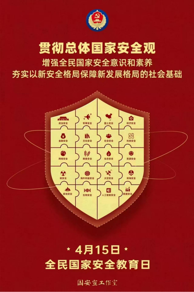 2023年4月15日是第八个全民国家安全教育日,今年的活动主题是:“贯彻总体国家安全观,增强全民国家安全意识和素养,夯实以新安全格局保障新发展格局的社会基础。”