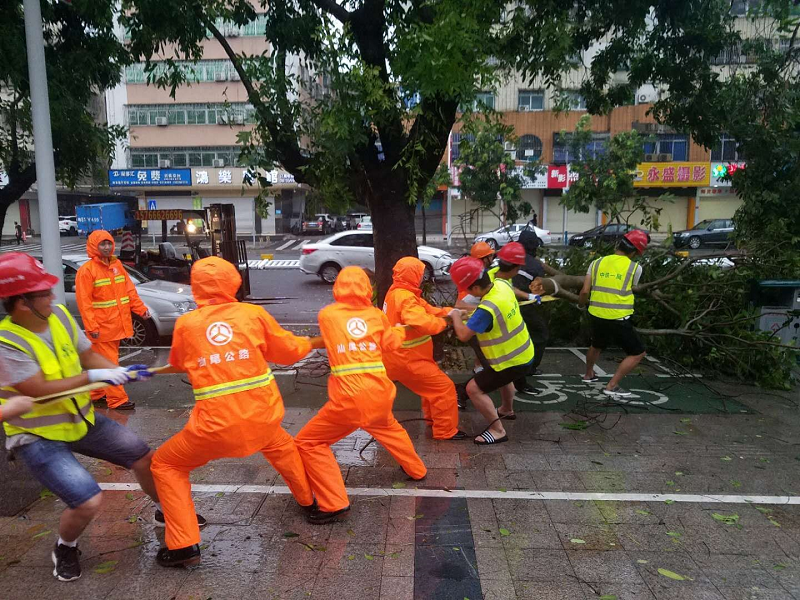 三、 积极行动,全力以赴做好抢险救灾工作。9月16日超强台风“山竹”逼近电影天堂 海面,最大风力达14级,对管养公路各条线路的路基、路面、路树、标志、边坡等造成严重破坏。在风力减弱后,公路应急抢险队伍迅速出动,采用分组、分段的方式,奔赴各条受灾路线,连夜冒雨积极奋战,利用挖掘机、装载机、油锯、运载车辆、柴刀、应急灯等机械和工具,全力对管养的各条线路、路段进行清障,及时消除影响交通行车安全的隐患。其中,汕尾市公路局属下单位市区公路养护中心组织4支抢险小分队,64人,紧急调用26台应急抢险设备,到国道236线西闸至遮浪路段、省道S241线顶盖山至品清村委会、赤岭至新湖村、西河村至长沙村入囗等受灾严重路段清理倒塌路树、广告牌及铁皮等障碍物。经过三个多小时的道路抢通工作,以上路段全面恢复正常交通。与此同时,市政代建工程项目防御小组同各工程项目工作人员也第一时间奔赴受灾现场,先后到香洲路、康平路、海滨大道及红海东路西段分组开展抢险救灾工作。各抢险队员齐心协力、各司其职,绿化抢修组队员清理倒伏路树、广告牌等障碍物,安全设施抢修组队员修复被台风吹倒的中间护栏。据统计,市政项目投入抢修人员共146人,挖机6台,铲车2台,叉车3台,小型发电机4台,水泵7台。经过连夜抢修,以上道路已基本完成清理路障及抢修中间护栏等工作,保证了市区各交通要道的正常通行。