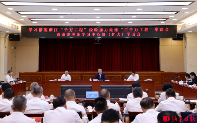 为总结“浙江之行”学习考察成果,进一步促进转化落地,5月30日,学习借鉴浙江“千万工程”经验加力提速“百千万工程”座谈会暨市委理论学习中心组(扩大)学习会举行。市委书记、市人大常委会主任逯峰主持会议并讲话,强调要深入学习贯彻习近平总书记视察广东重要讲话、重要指示精神,认真学习借鉴浙江“千万工程”经验,全面落实省委“1310”具体部署,对标先进,奋进追赶,敢为善为,奋力推动“百千万工程”不断取得新突破新成效。市委副书记、市长郑海涛,市政协主席李耿坚,市委副书记林少文出席会议。