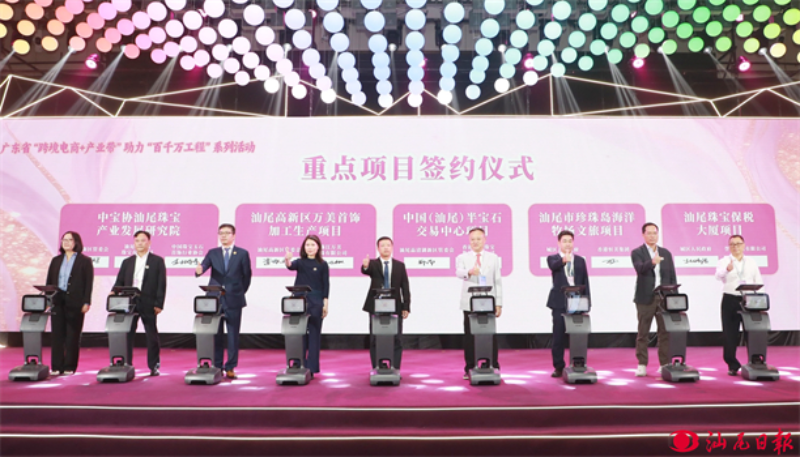 逯峰指出,党的二十届四中全会就建设现代化产业体系作出专门部署,为汕尾彩宝产业发展打开更为广阔的空间。汕尾将以“跨境电商+产业带”助力“百千万工程”试点为抓手,扎实推进彩宝产业高端化、智能化、绿色化转型发展,加快聚链成势、向新而行、做大做强。逯峰说,今日之汕尾,得山海之韵、聚宝石之光,机遇无限,生机勃发,诚挚邀约全球行业翘楚、珠宝企业、设计机构、电商平台、科研院所等共同在汕尾“点石成金”。希望共筑现代产业生态,共建研发中心、区域总部、现代化供应链基地,加快发展更加智能智造、更具竞争力的产业集群;希望共拓国内国际市场,推动检测认证互认、行业标准互通,着力提升贸易便利化水平,让汕尾彩宝更加顺畅地“卖全球、秀全球”;希望共讲汕尾珠宝故事,成为汕尾城市的“推介官”、珠宝产业的“代言人”,让“世界彩宝之都”的金字招牌更加闪耀亮眼。汕尾将努力把每一份诚意转化为高效透明的政务服务和配套完善的产业生态,进一步整合资源、搭建平台、优化环境,让企业在汕尾安心发展、行稳致远。