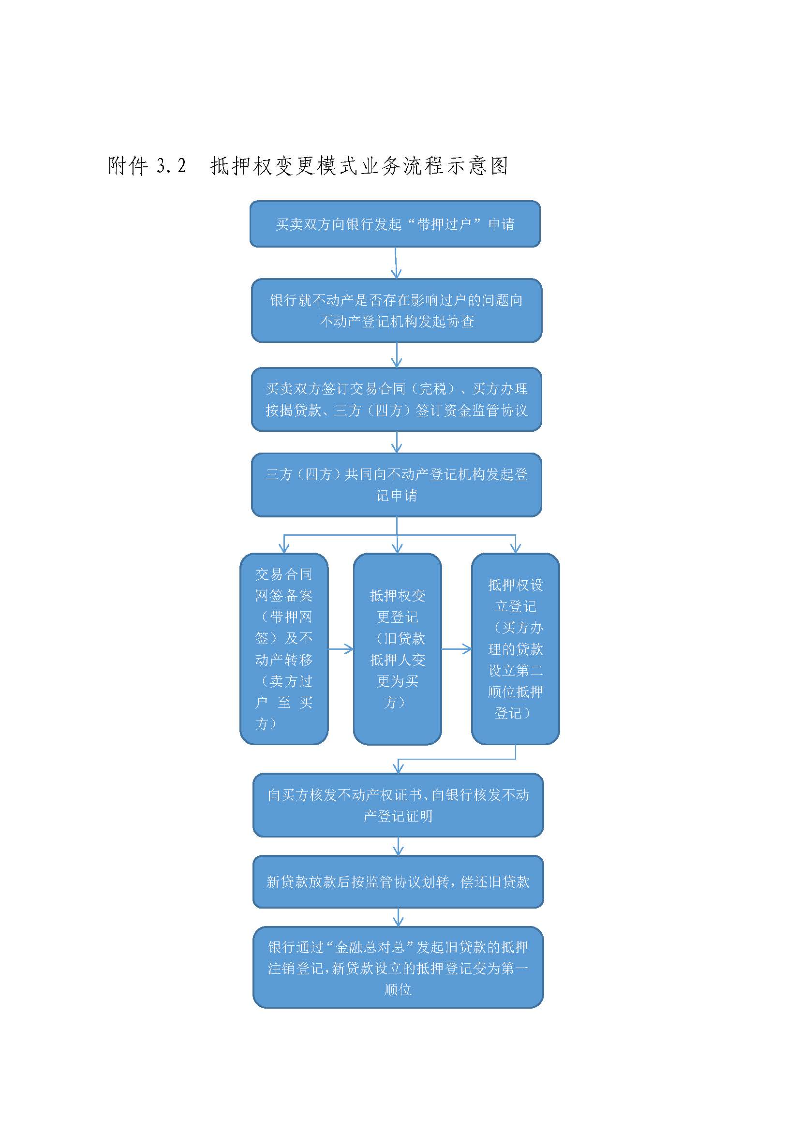 2.抵押权变更模式:通过借新贷、过户后(旧抵押权变更)并还旧贷实现“带押过户”的,不动产登记机构根据申请按序将交易合同网签备案及不动产转移(卖方过户至买方)、抵押权变更(原设立的抵押人随房屋所有权转移变更为买方)、抵押权设立(买方新办理的按揭贷款设立第二顺位抵押权)合并办理。