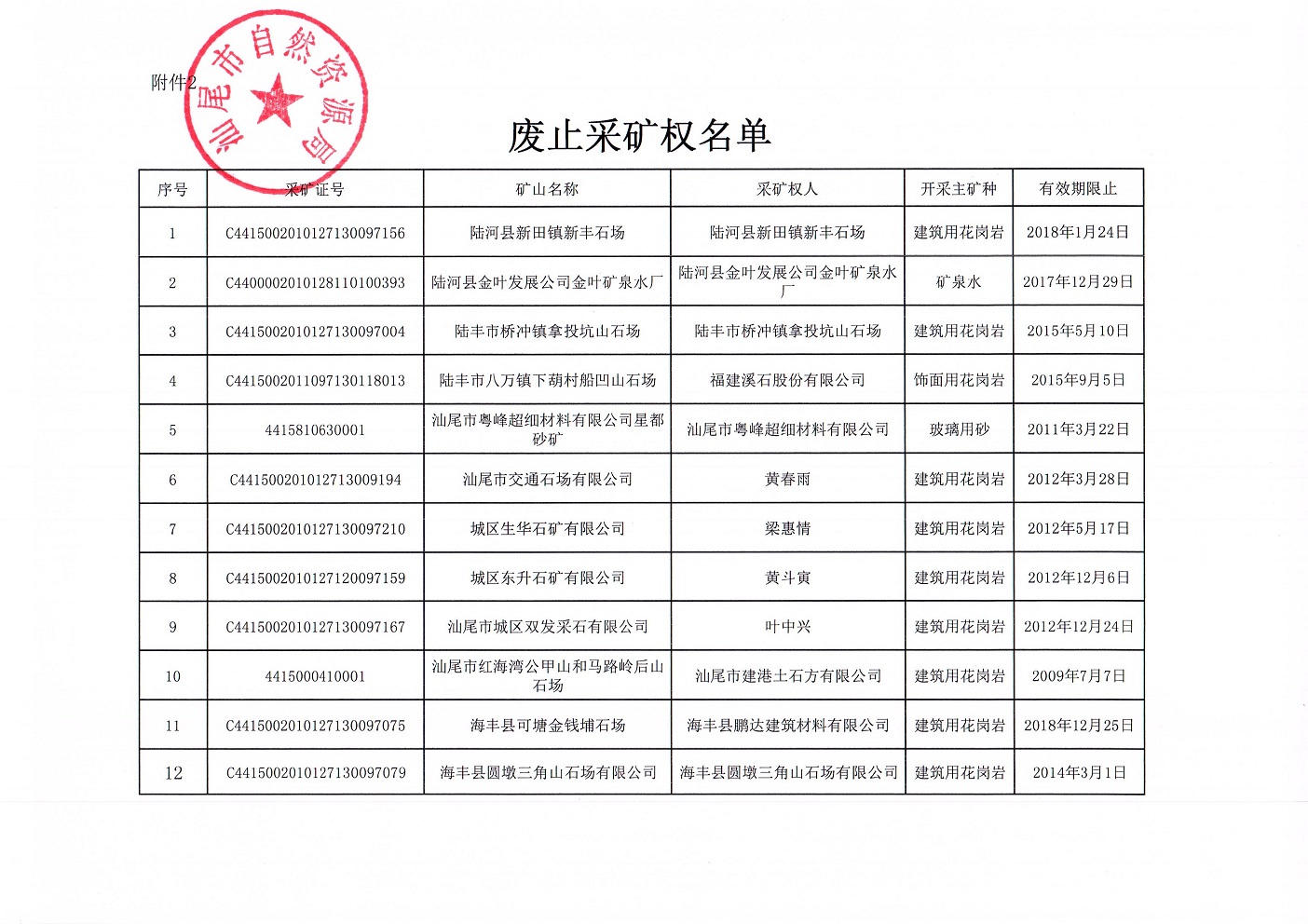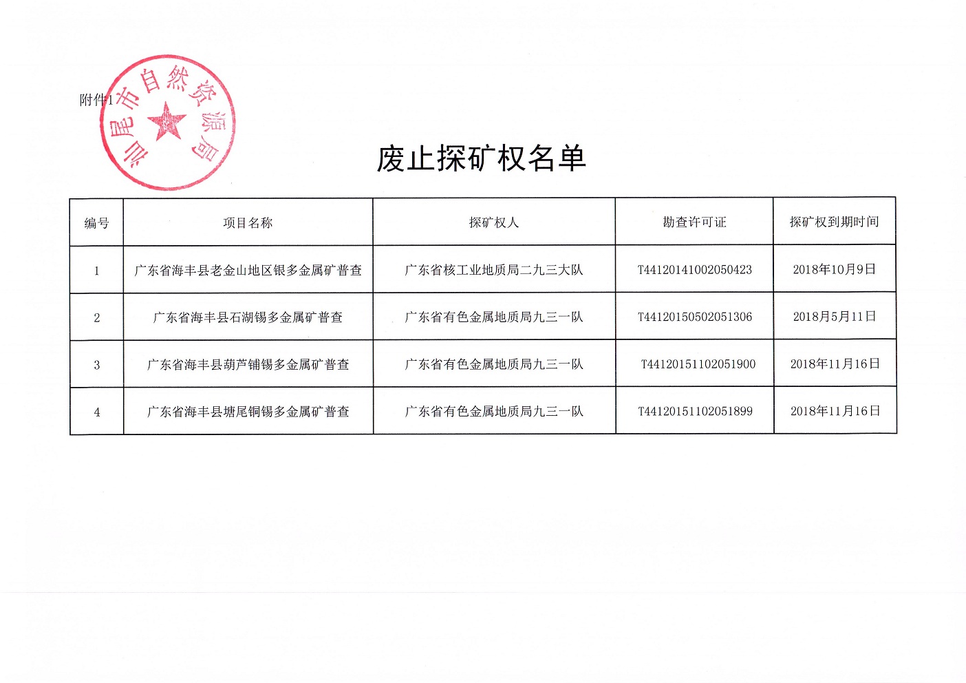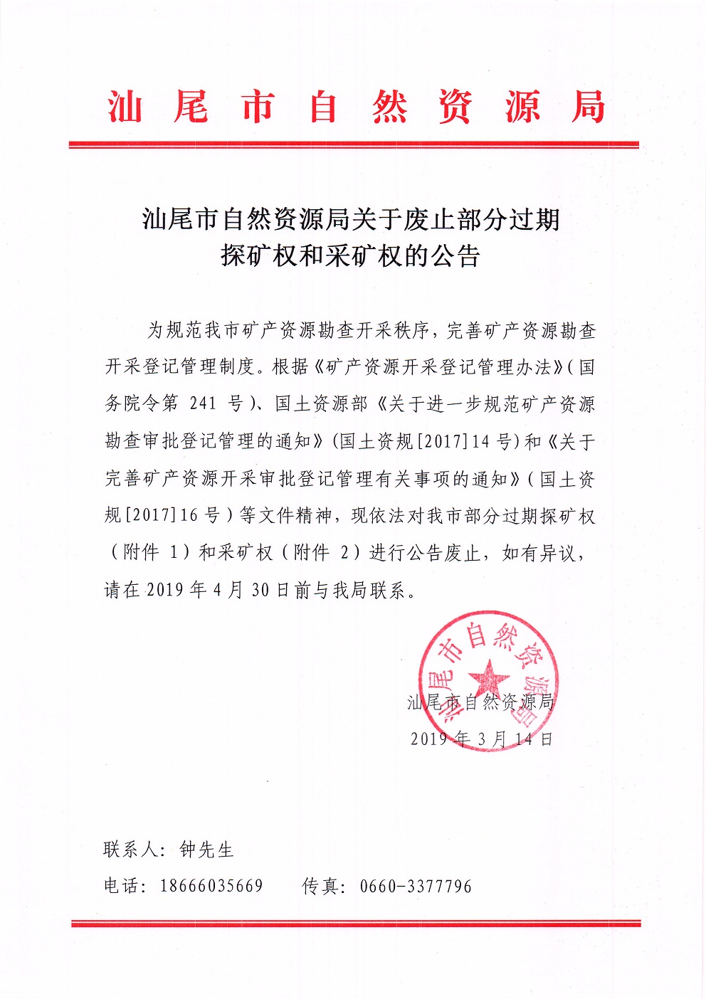 汕尾市自然资源局关于废止部分过期探矿权和采矿权的公告