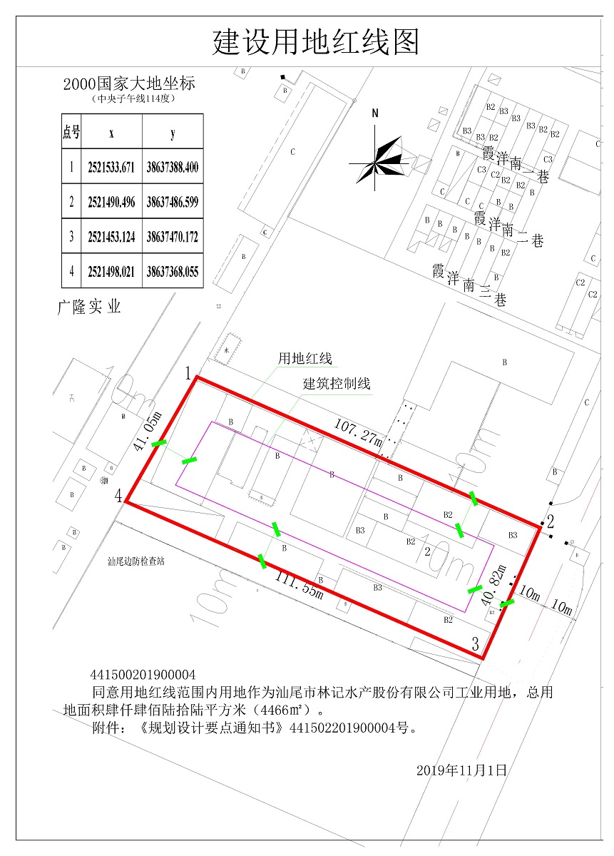 2019年10月,本局收到汕尾市林记水产股份有限公司办理建设用地规划许可证的申请及有关材料。依照《广东省城乡规划条例》第二十九条的有关规定,现对相关事项公示如下: