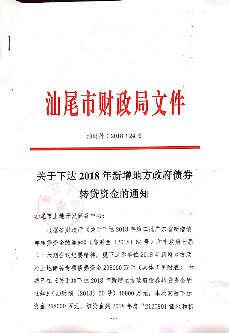 关于下达2018年新增地方政府债券转贷资金的通知
