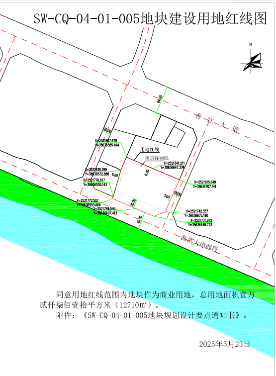汕尾市锦裕恒置业有限公司通过公开招拍挂取得位于市区海滨大道西段北侧二宗面积分别6411㎡和6299㎡,用途:商业用地的土地使用权,并已办理用地合宗手续,合宗后面积为12710平方米,现拟核发该用地的建设用地规划许可证。依照《广东省城乡规划条例》第二十九条的有关规定,对相关事项公示如下: