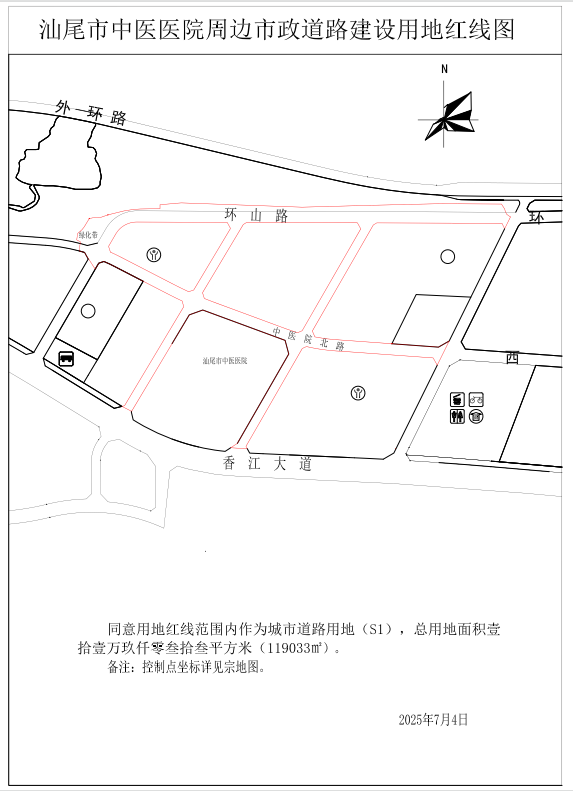 汕尾市住房和城乡建设局通过划拨方式取得位于汕尾市区香江大道中医医院段北侧一宗面积119033㎡公用设施用地的土地使用权,现拟核发该用地的建设用地规划许可证。依照《广东省城乡规划条例》第二十九条的有关规定,对相关事项公示如下: