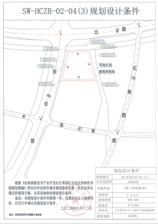 用地位置:汕尾高新区红草园区中园路北侧、创业路东侧。