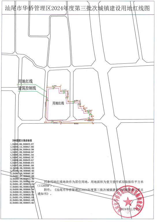 汕尾市华侨管理区房地产有限公司通过公开招拍挂取得位于华侨管理区侨兴街道办事处第二社区茗花里一宗面积11269㎡二类居住用地的土地使用权,现拟核发该用地的建设用地规划许可证。依照《广东省城乡规划条例》第二十九条的有关规定,对相关事项公示如下: