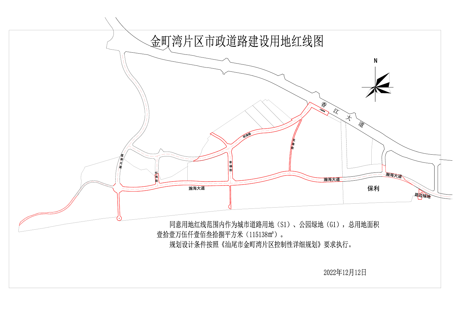非农建设用地会审会审议,同意将位于汕尾市区金町湾片区面积为115138㎡的土地,规划安排给汕尾市住房和城乡建设局作为金町湾片区市政道路建设用地。现拟核发该项目的建设用地规划许可证手续。依照《广东省城乡规划条例》第二十九条的有关规定,对相关事项公示如下:
