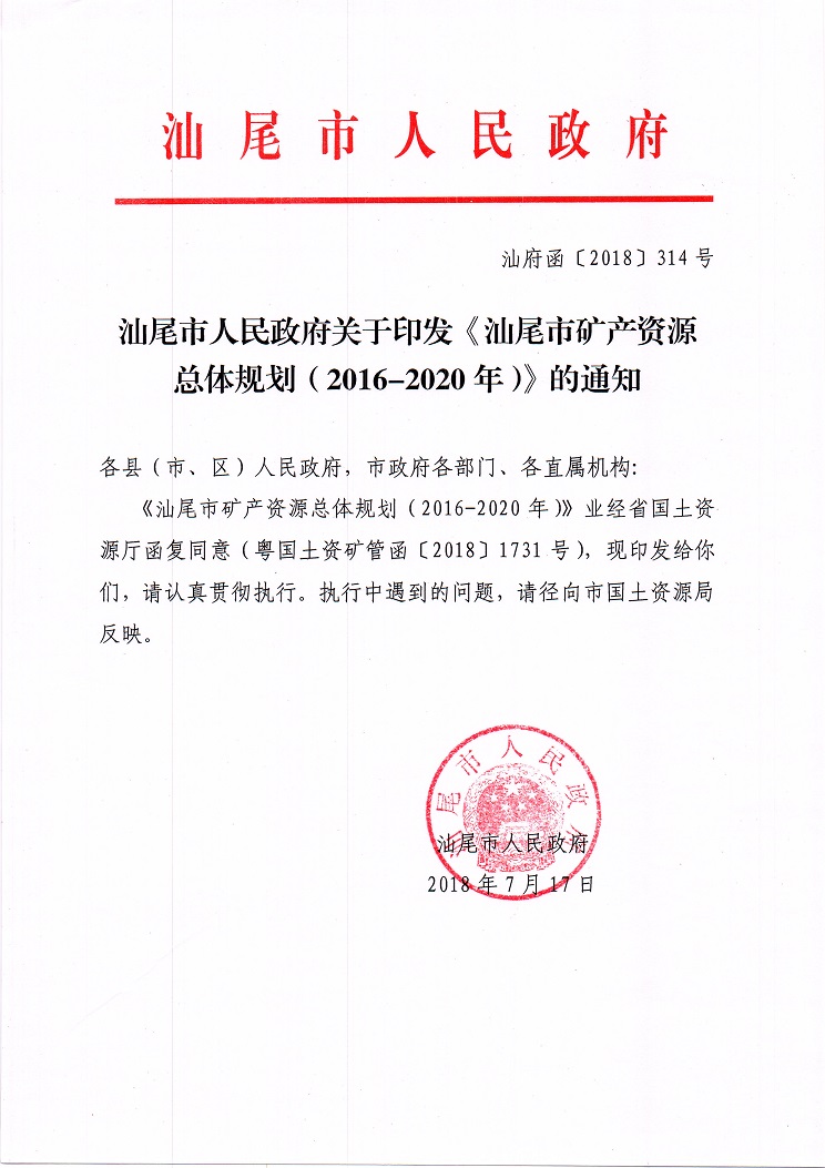 汕尾市矿产资源总体规划(2016-2020)