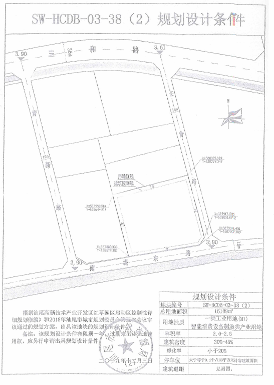 用地位置:汕尾高新区红草园区范围内南堤东路北侧、长青路西侧。