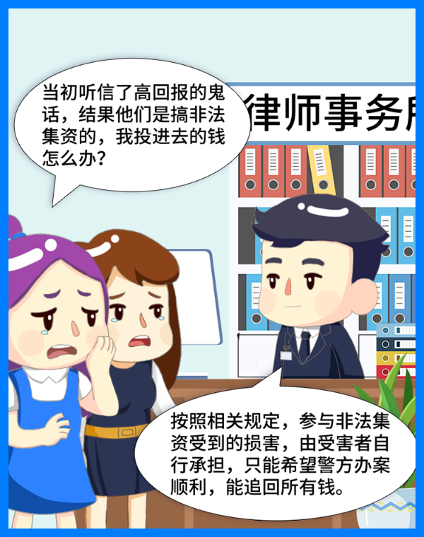 《条例》规定因参与非法集资受到的损失,由集资参与人自行承担。这意味着,如果非法集资参与人的财产不能全部被追回,损失最终由参与人自己承担。在面对高利诱惑时,大家一定要擦亮眼睛,冷静分析,守住自己的钱袋子,谨慎投资,远离非法集资。