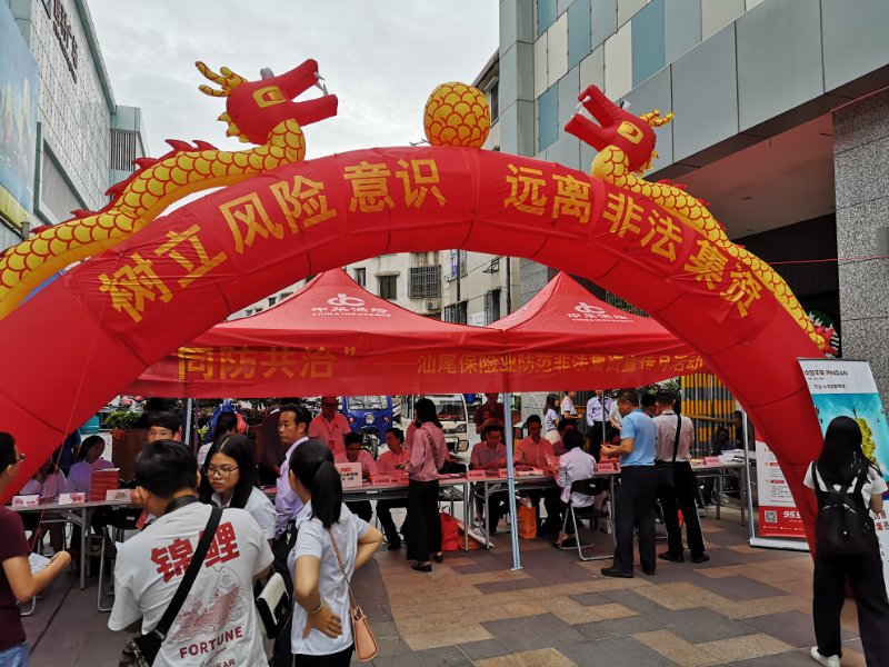 5月22日,汕尾市保险协会组织辖区各保险公司在汕尾大道信利广场开展“携手筑网·同防共治”为主题的2019年汕尾市保险业防范非法集资宣传教育活动,进一步加大汕尾防范非法集资宣传力度,拓展宣传覆盖面,营造浓厚宣传氛围。市金融局、汕尾银保监分局、人行汕尾中支有关负责人出席了活动。