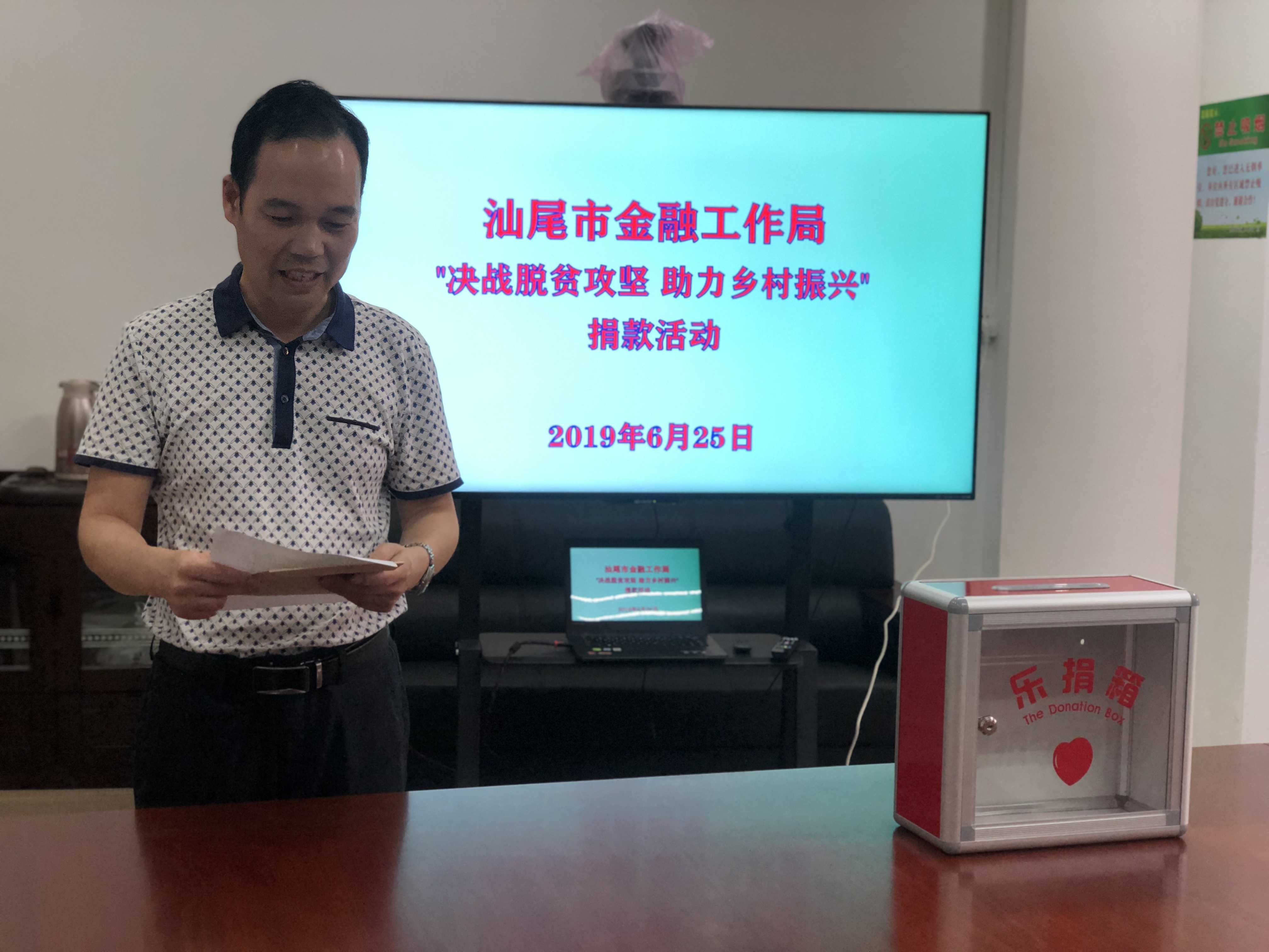 2019年是新中国成立70周年,也是打赢脱贫攻坚战的决战之年。为进一步发扬中华民族“行善积德,为善至乐”的传统美德,根据市委、电影天堂 关于开展扶贫济困日活动的有关要求,围绕“决战脱贫攻坚,助力乡村振兴”的活动主题,6月25日,汕尾市金融工作局组织全局干部职工开展“广东扶贫济困日”捐款活动。