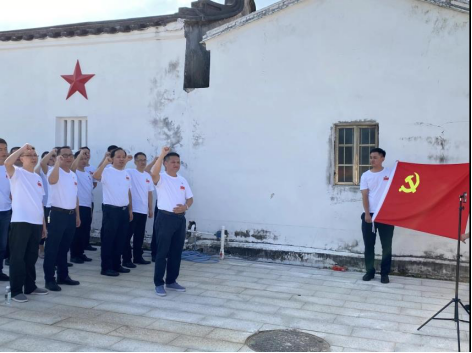 在我局党支部委员邱伟忠带领下,全体党员们在党旗下重温入党誓词、庄严宣誓,向抗日战争时期为夺取胜利献出鲜血和生命的革命先烈们致以崇高的敬意。