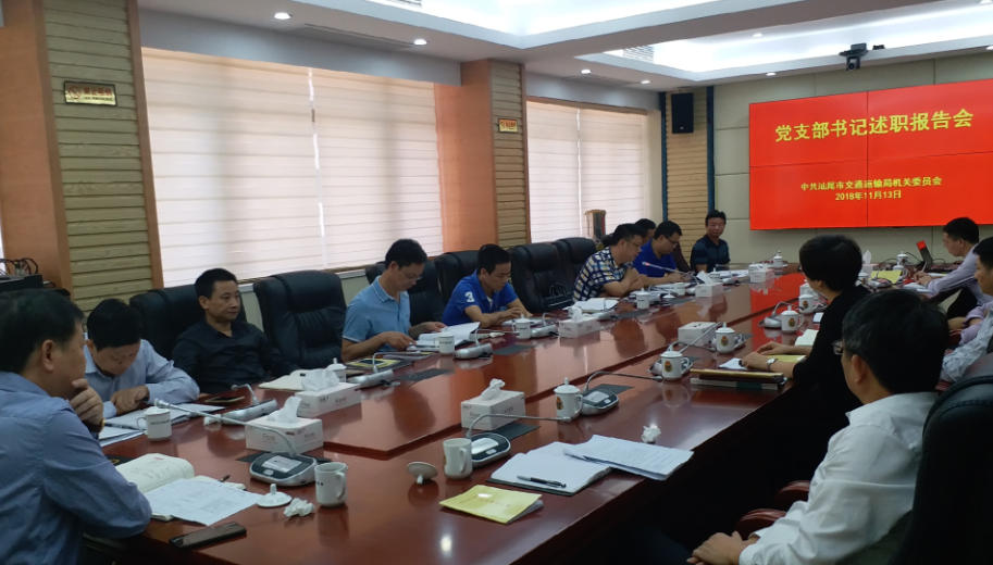 11月13日上午,市交通运输局召开2018年度党支部书记述职报告会,听取各支部书记今年以来的党建工作情况汇报,并对抓好下一步交通党建工作作了部署。会议由局党组书记、局长林展海同志主持,局在家党组成员、局直各党支部书记、局机关各科室和局直各单位负责人参加会议。
