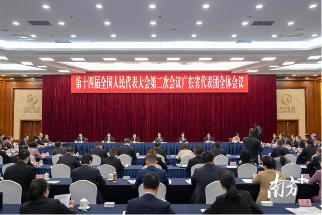 3月5日下午,十四届全国人大二次会议广东省代表团举行全体会议,审议政府工作报告。图片来源:南方+客户端