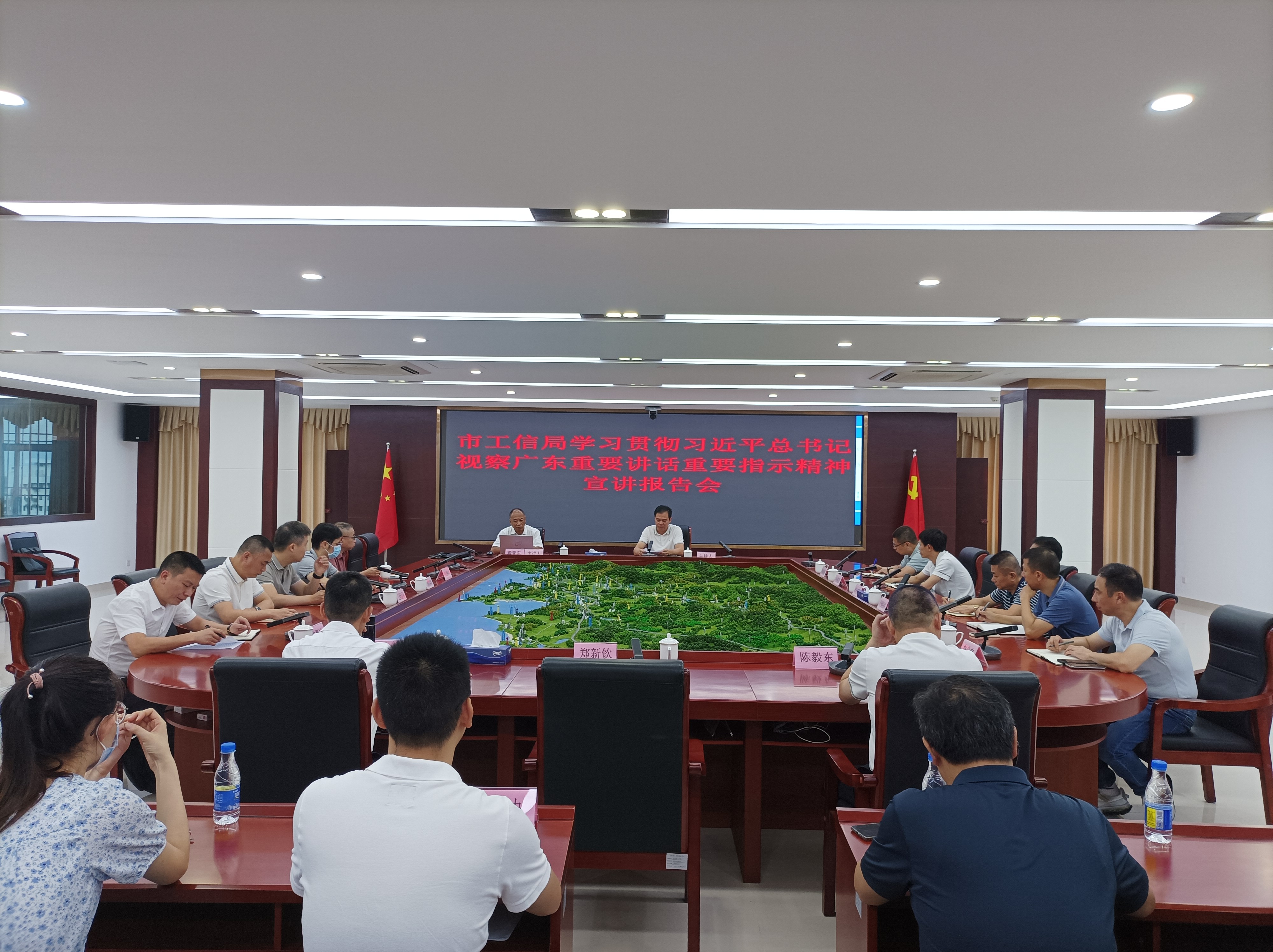 6月14日上午,市工业和信息化局以党组理论学习中心组(扩大)学习会的形式,举办学习贯彻习近平总书记视察广东重要讲话重要指示精神宣讲报告会,报告会邀请汕尾职业技术学院马克思主义学院院长龚亚东同志主讲。报告会由局党组成员、副局长郑新钦同志主持,局全体党员干部参加。