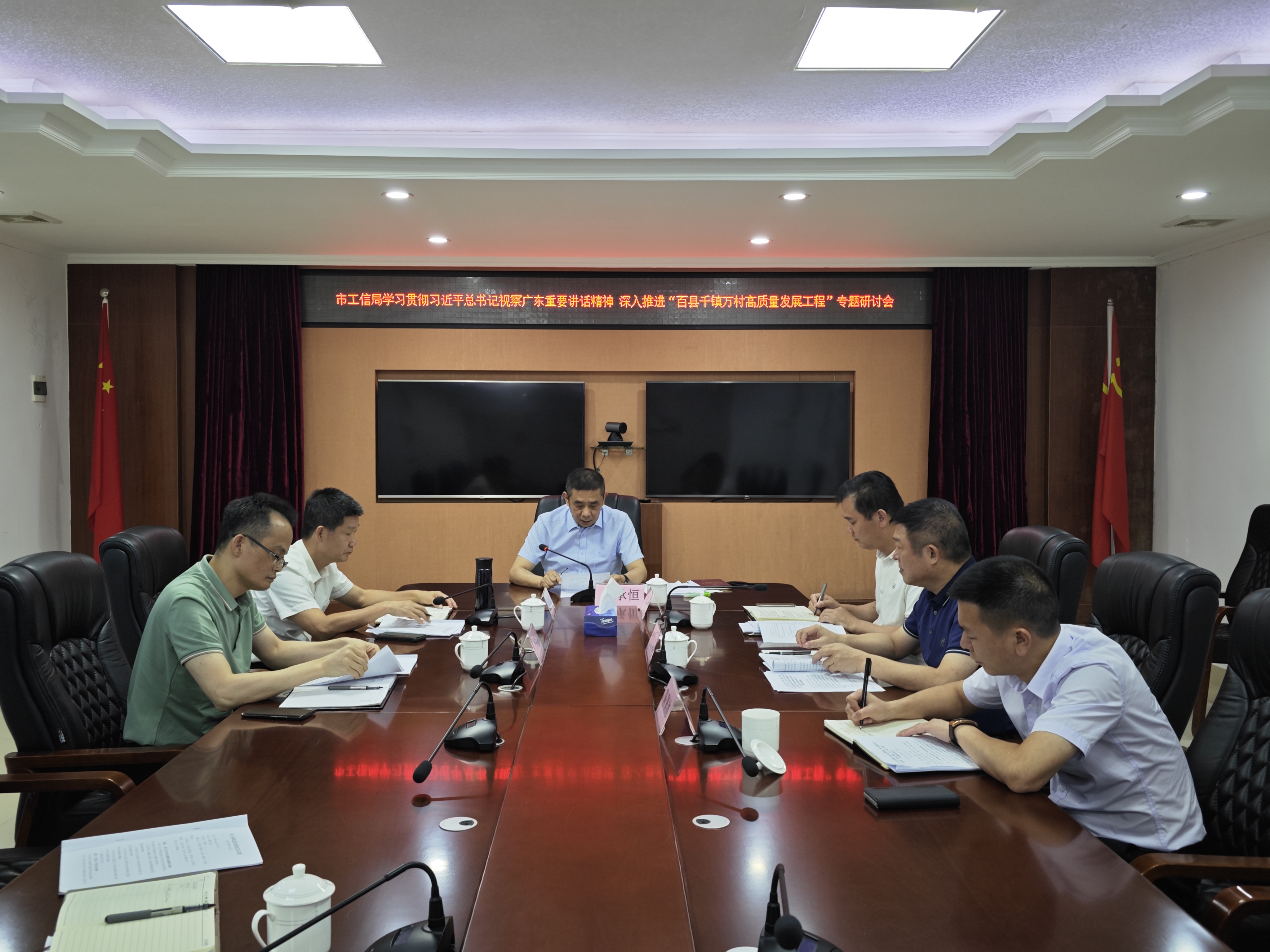 为深入学习贯彻习近平总书记视察广东重要讲话精神,扎实推进“百县千镇万村高质量发展工程”,根据市委工作部署,在驻局纪检监察组的指导下,市工信局于6月9日召开“学习贯彻习近平总书记视察广东重要讲话精神 深入推进‘百县千镇万村高质量发展工程’”专题研讨会。市工信局党组书记、局长卢承恒同志主持会议。