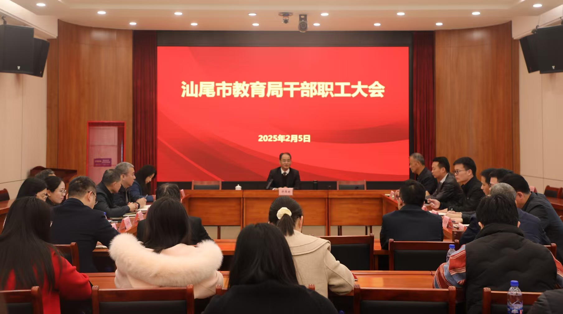 2月5日,市教育局召开干部职工大会,部署近期教育工作。市政协副主席、市教育局局长许伟明主持会议并讲话。市教育局全体干部职工、市教师发展中心班子成员参加会议。