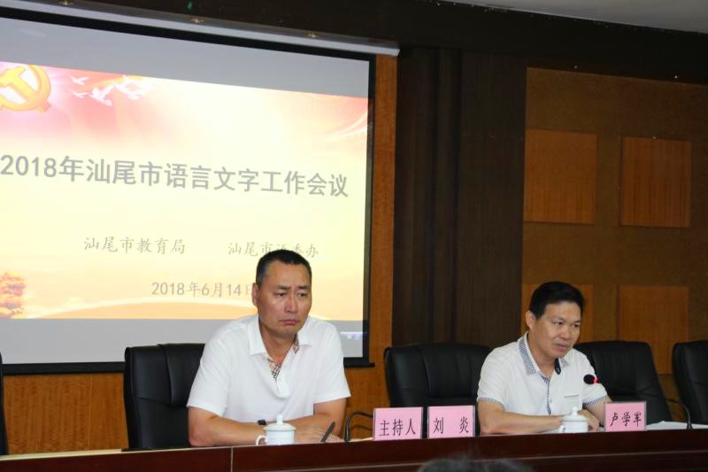 2018年6月14日,市教育局、市语委办组织召开了2018年汕尾市语言文字工作会议,传达学习2018年全省语言文字工作会议精神,部署开展广东省三类城市语言文字工作督导评估暨普通话基本普及县域验收工作,部署开展全市中小学语言文字全面达标建设工作。市教育局党组副书记、副局长卢学军同志出席会议并讲话,市教育局党组成员、调研员刘炎同志主持会议。各县(市、区)教育局分管语言文字工作的领导、分管教育督导工作的领导,语委办主任或语委办专干,市直各中小学分管语言文字工作的领导,市语委部分同志等共36人参加了会议。