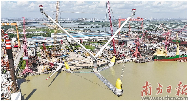6月26日,全球单体容量最大的漂浮式风电平台“明阳天成号”在广州南沙进行风轮总成,将于近期完成安装。投运后,“明阳天成号”平均每年可发电约5400万度,可满足3万户三口之家一年的日常用电。该平台是全球首个在漂浮式基础上安装两座风机的海上风电平台,首创“V”字形塔架结构,总装机容量达16.6兆瓦。