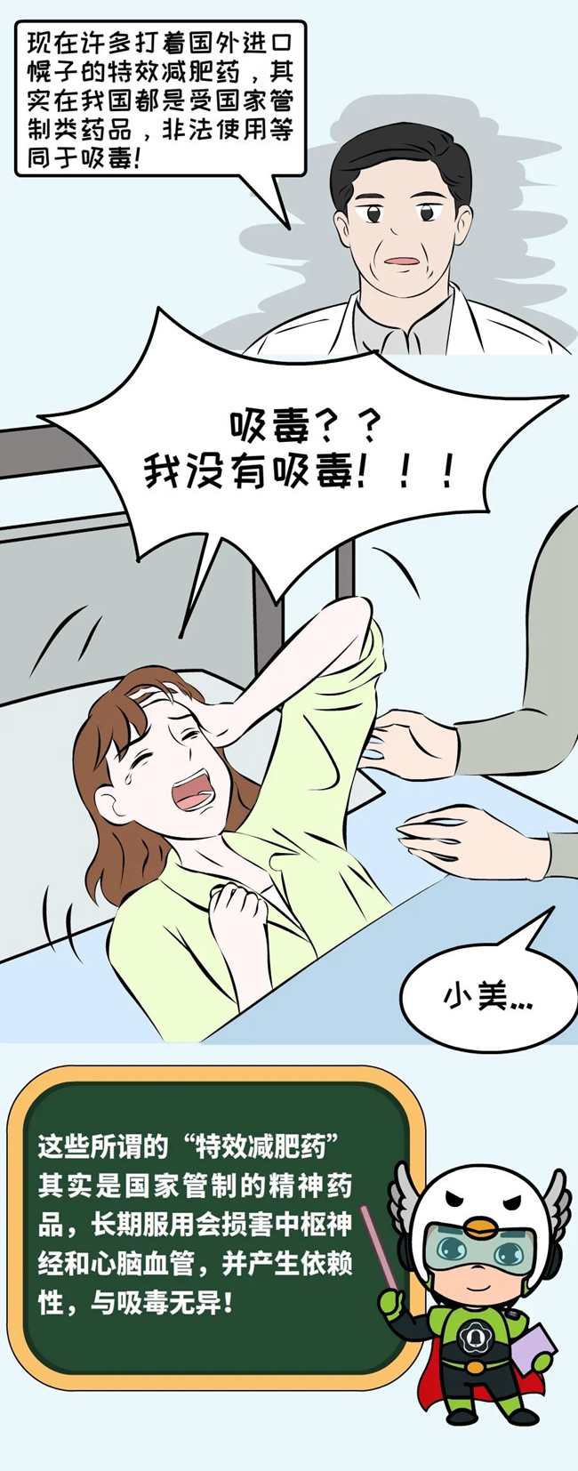 许多所谓的“特效减肥药”其实是国家管制的精神药品,长期服用会损害中枢神经和心脑血管,并产生依赖性,长期食用与吸毒无异。无毒青春,健康成长,需要我们时刻保持警惕!【供稿:南京禁毒】
