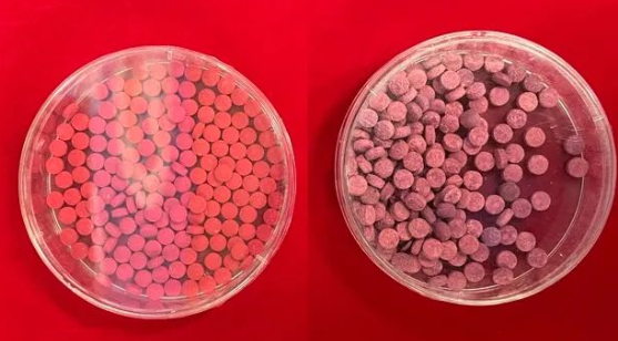 麻古的外观多为圆形、药片状,黄连素药片大小,与摇头丸相似,通常呈玫瑰红、橘红、苹果绿等色,添加色素香料呈不同颜色和香味,上面印有“R”“WY”“66”“888”等标记。