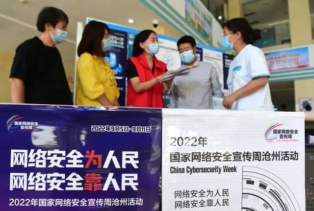 在河北省沧州市妇幼保健院,网络安全宣传志愿者向人们宣传网络安全与日常生活的关系(2022年9月6日摄)。新华社记者 王民 摄