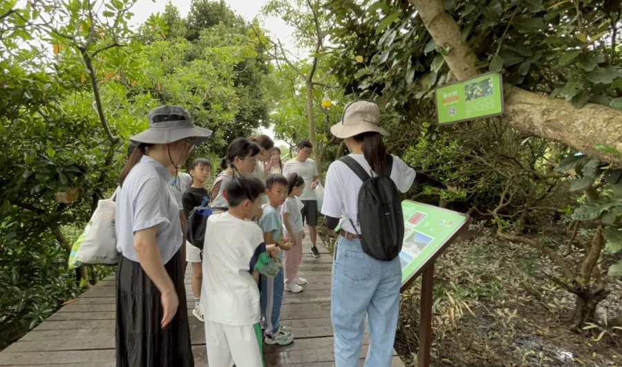 “红树林是我们认识湿地生态系统的一扇窗。”在蓝玉杏的带领下,孩子们在红树林自然教室中汲取知识,树立保护湿地的意识。