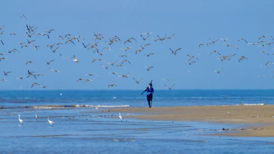 近日,湛江吴川近日迎来勺嘴鹬、黑嘴鸥等众多鸟类,滩涂成观鸟胜地,生态环境改善成效显著,吸引珍稀鸟类栖息。