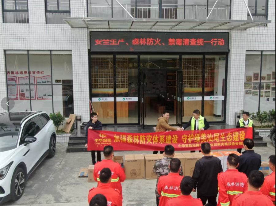 1 月 26日,中华财险汕尾中心支公司为国有吉溪林场捐赠风力灭火机等一批森林防火物资,助力吉溪林场加强森林防火体系建设,守护绿美汕尾生态建设。