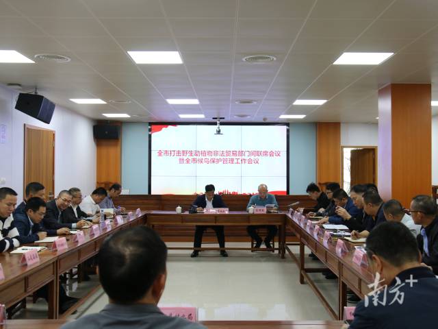 市林长办、市委宣传部、市委网信办、市公安局、市林业局、市市场监管局、汕尾海关、市邮政管理局等18个市打击野生动植物非法贸易部门间联席会议制度成员单位有关负责同志,各县(市、区)林业主管部门有关负责同志,市直属国有林场主要负责人等参加了会议。