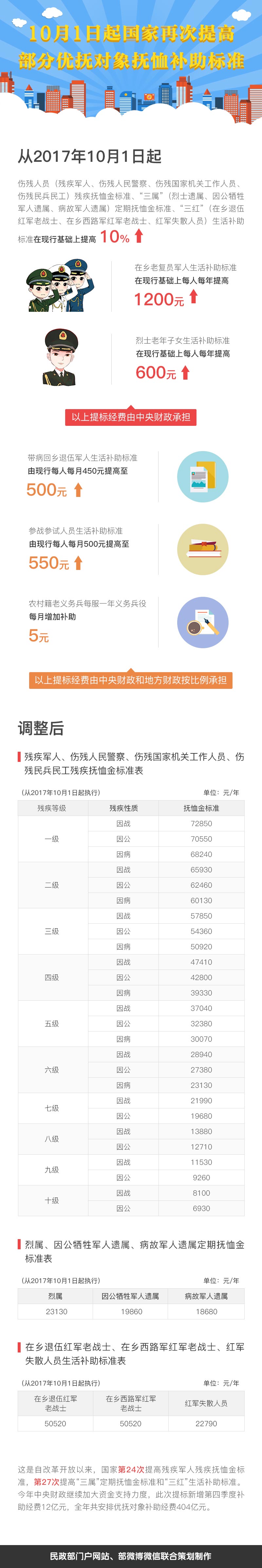 图解:10月1日起国家再次提高部分优抚对象抚恤补助标准