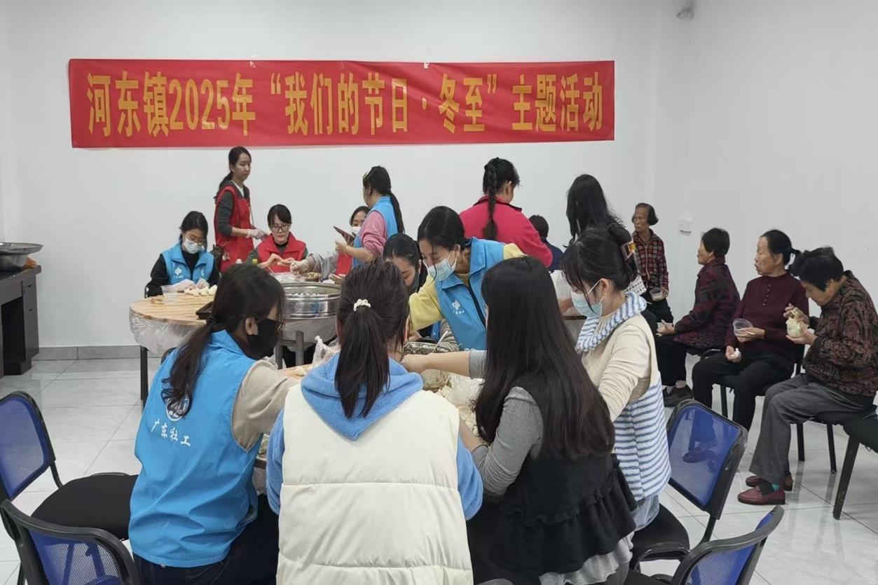 (图为河东镇“双百”社工联合志愿者开展冬至主题活动)