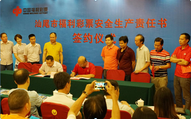 为落实“民政服务机构安全管理月”活动的工作,2016年6月,市福彩中心组织全市福彩投注站进行消防安全培训和签订《汕尾市福利彩票投注站经营场所安全责任承诺书》的活动;通过该活动,提高了福彩销售安全生产管理水平,实现了福彩工作零事故,保障福彩事业的健康发展;日前,市福彩中心与全市福彩投注站业主在海丰举行了《安全生产责任书》签订仪式。