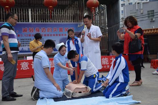 11日上午9时在市城区凤山街道奎山社区开展防灾减灾宣传活动,市消防局消防官兵作了灭火器材、应急解救器材使用方法等演示,市第一人民医院医务人员作了心肺复苏、外伤包扎等急救演示,与社区居民、学生等互动体验自救互救技能,以更加直观的方式,向公众传播各类应急急救常识、逃生自救技巧、消防安全知识等。