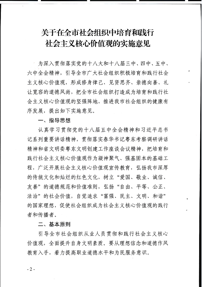汕尾市民政局关于印发《关于在全市社会组织中培育和践行社会主义核心价值观的实施意见》的通知