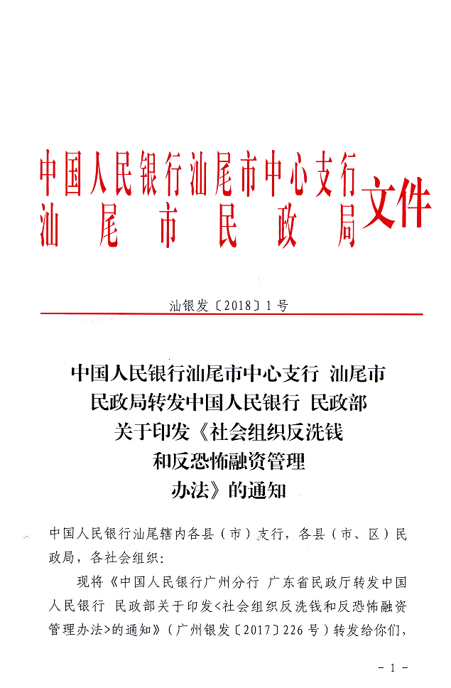 关于印发《社会组织反洗钱和发恐怖融资管理办法》的通知