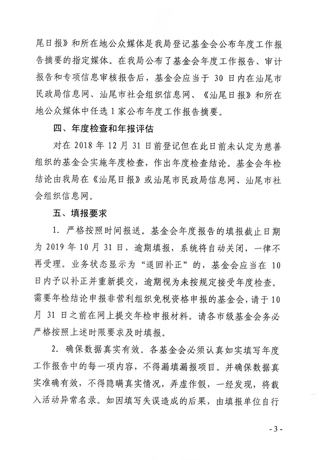 汕尾市民政局关于开展市级基金会2018年度报告和年度检查工作的通知