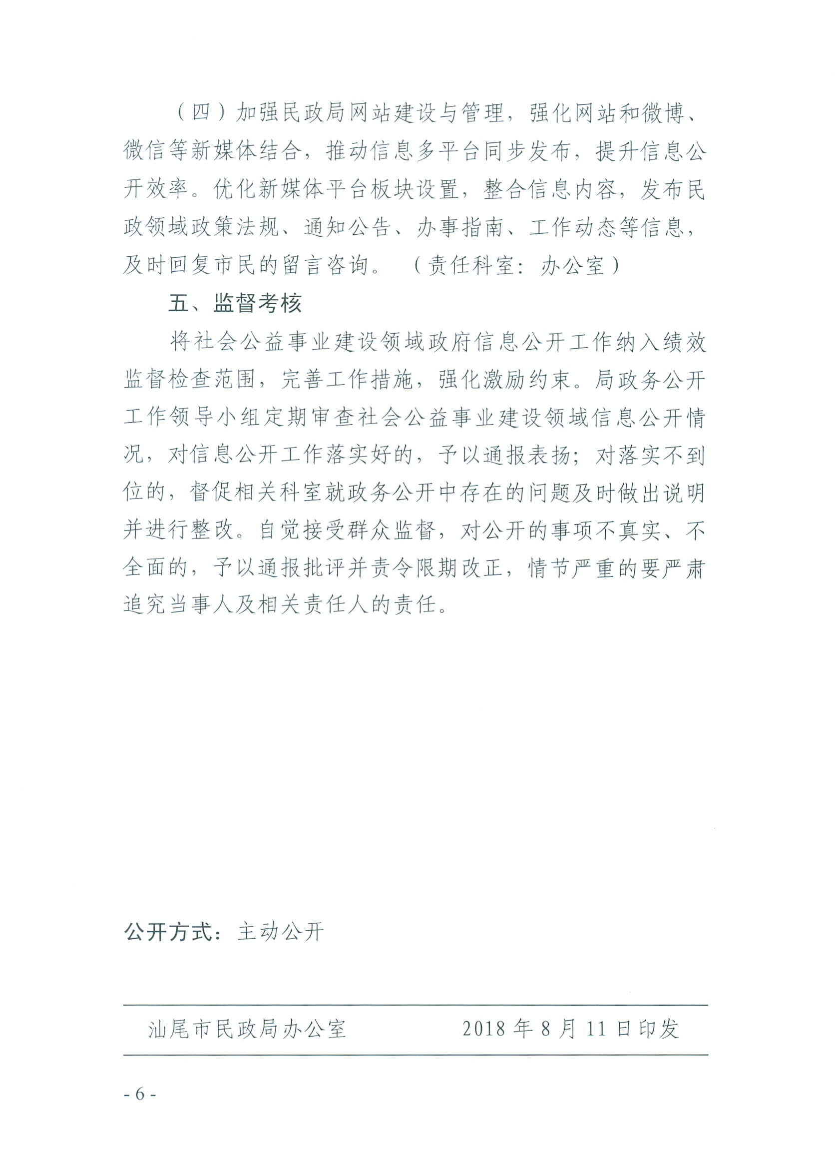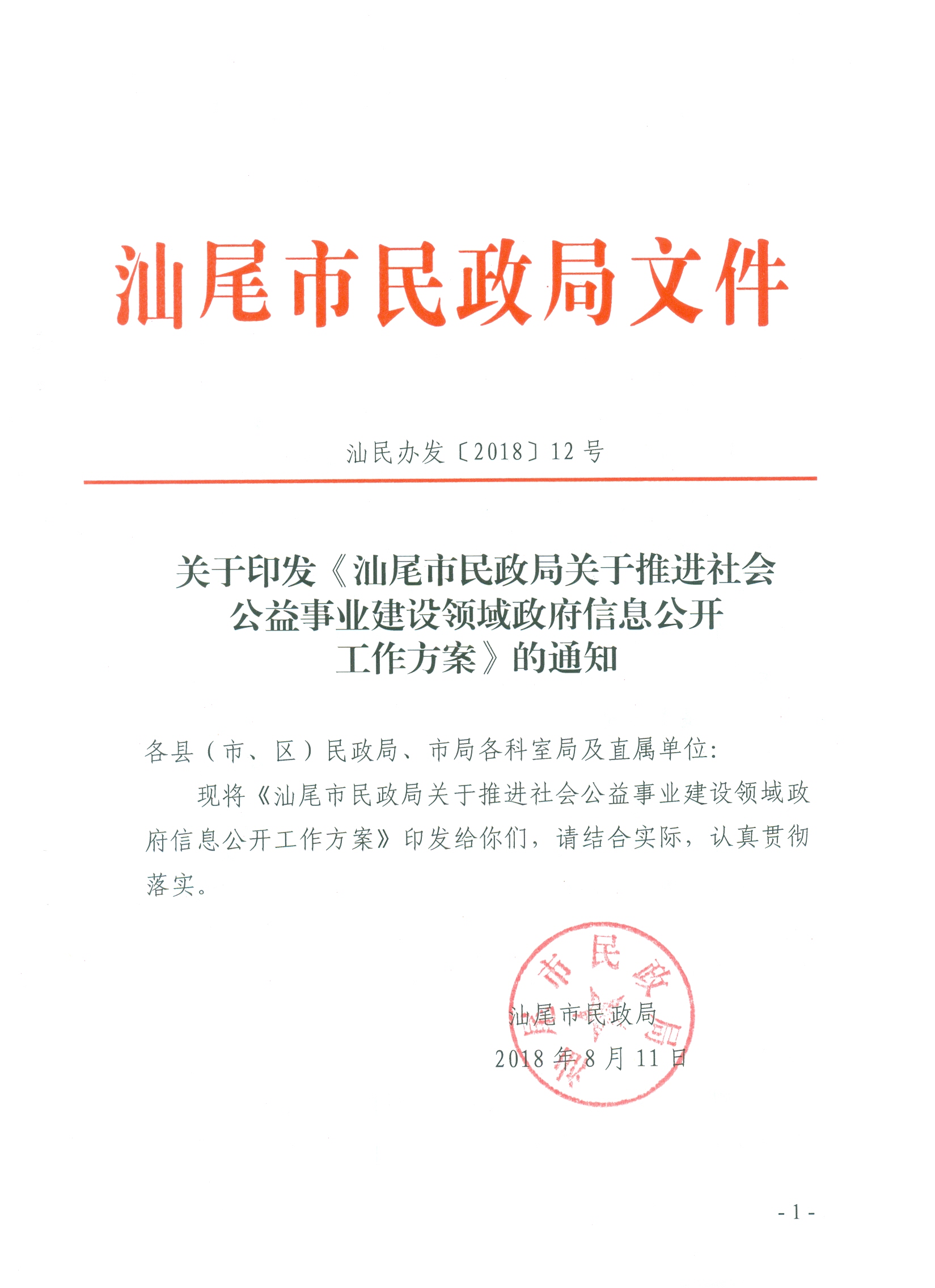 关于印发《汕尾市民政局关于推进社会公益事业建设领域政府信息公开工作方案》的通知