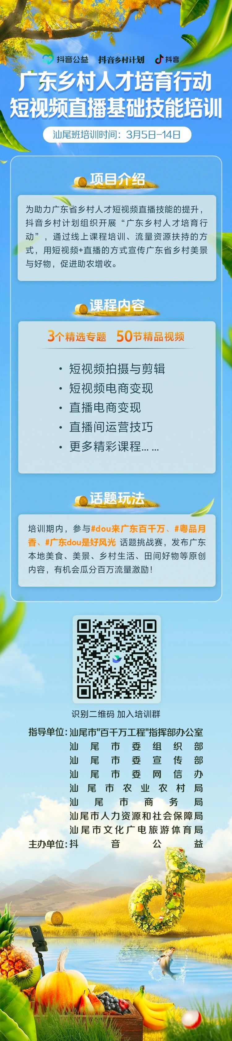 广东乡村人才培育行动 短视频直播基础技能培训,欢迎参加!
