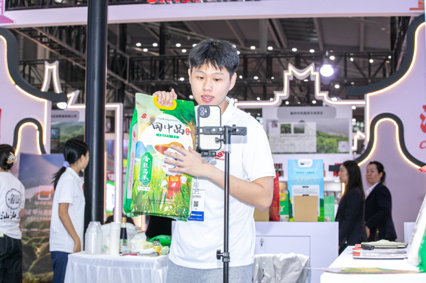 在2025深圳食博会现场,多个汕尾企业同时开启直播带货,线上线下同步发力。在汕尾市丰隆米业有限公司展位内,主播热情洋溢地介绍汕尾丝苗米,将汕尾农产品的魅力实时分享给全国各地的消费者。