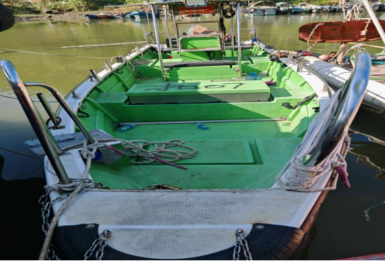 2024年9月11日,汕尾市海洋综合执法支队在陆丰市乌坎港内查获一艘标识“利群救援”“06”的玻璃钢船舶(编号扣08),总长9.8米,型宽2.35米,船上没有主机设备。