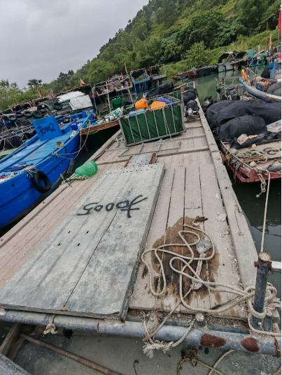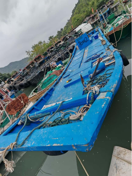 2.编号“扣002”船舶,船上放有“陆丰 良晖种养养殖船015”牌,船体材质玻璃钢,总长11.92米,型宽2.86米,主机1部,主机铭牌不详,主机型号、功率不详。